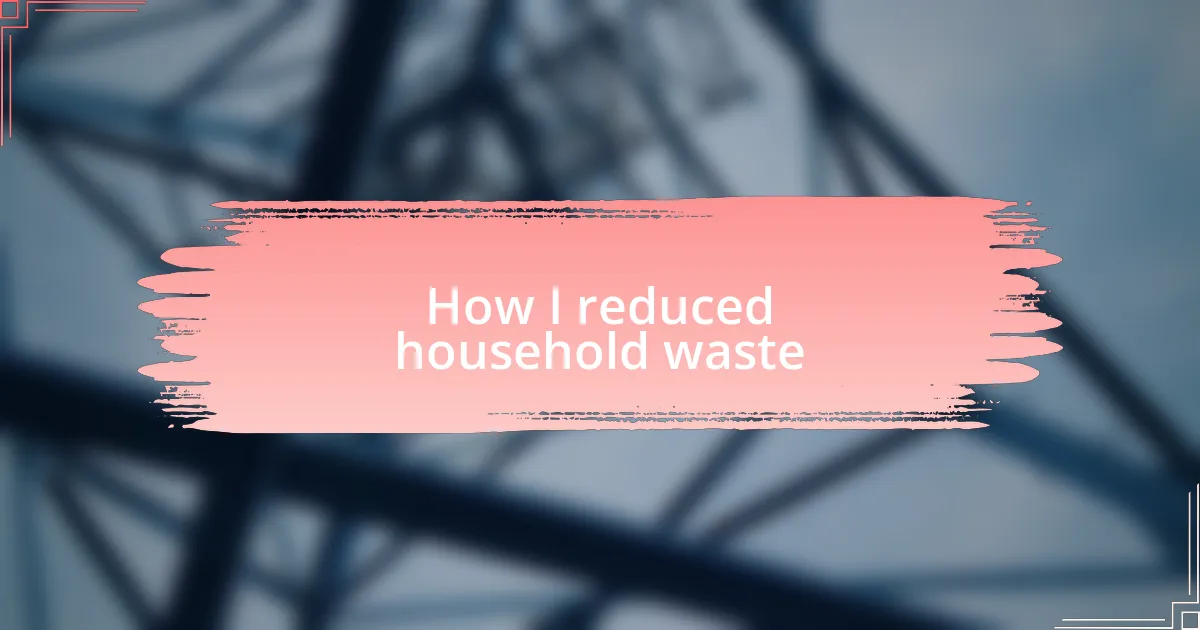 Reducing household waste has been a rewarding journey for me, one step at a time. I started by embracing reusable alternatives, like cloth bags and stainless steel containers for my groceries. I still remember the first time I realized I could skip the plastic and use my tote instead; it felt like a small victory that set the tone for bigger changes.